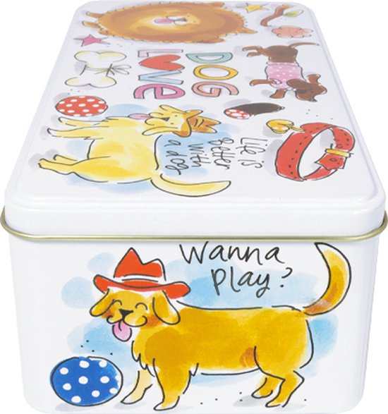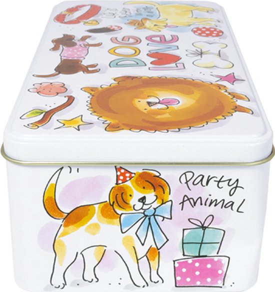 Het Blond Amsterdam Bewaarblik Hond 19,5X10X7 cm is een bewaarblik van het bekende merk Blond Amsterdam, met vrolijke kleuren en afbeeldingen van verschillende honden. Fleur jouw servies op met dit leuke bewaarblik van Blond Amsterdam! Dit 'dog love'- blik is onderdeel van de lijn artikelen met dierenafbeeldingen uit de Dog Lover en Cat Lover lijn. Het blik is uitgevoerd met vrolijke kleuren en figuurtjes!