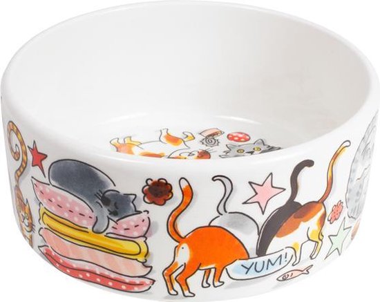 De Blond Voerbak cat Love 15,5 cm is een voerbak van aardewerk van het bekende Blond Amsterdam, met de opdruk van verschillende katten. Geschikt voor de vaatwasser en de magnetron! Deze voerbak is daarmee geschikt voor droogvoer, natvoer en water! De bak heeft een leuk design met een print van verschillende katten in de typische Blond-stijl en de opdruk 'cat Love'. De voerbak heeft een diameter van 15,5 centimeter en is 7 cm hoog.