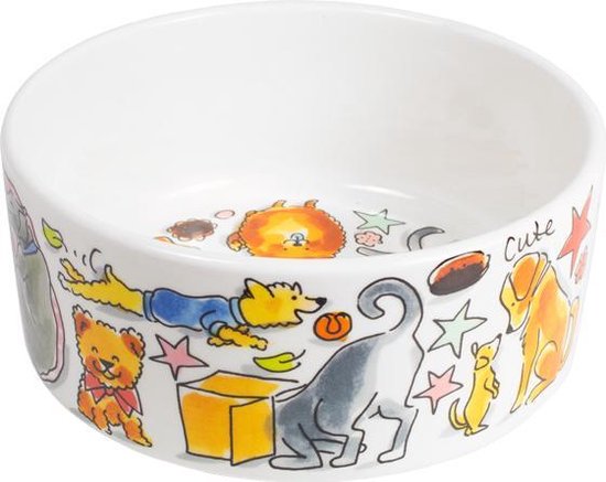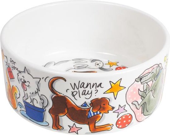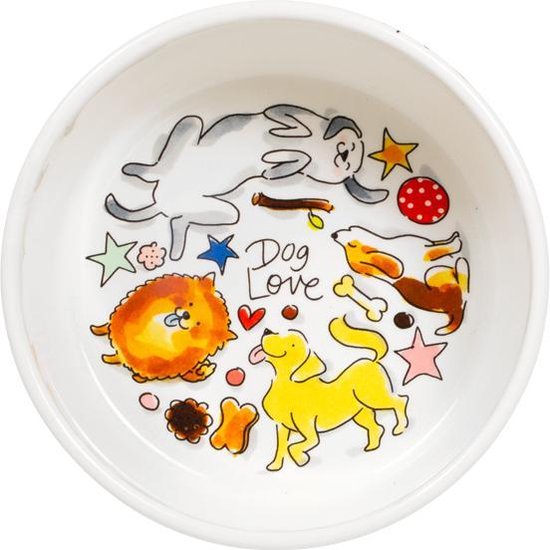De Blond Voerbak Dog Love 15,5 cm is een voerbak van aardewerk van het bekende Blond Amsterdam, met de opdruk van verschillende honden. Geschikt voor de vaatwasser en de magnetron! Deze voerbak is daarmee geschikt voor droogvoer, natvoer en water! De bak heeft een leuk design met een print van verschillende honden in de typische Blond-stijl en de opdruk 'Dog Love'. De voerbak heeft een diameter van 15,5 centimeter en is 7 cm hoog.