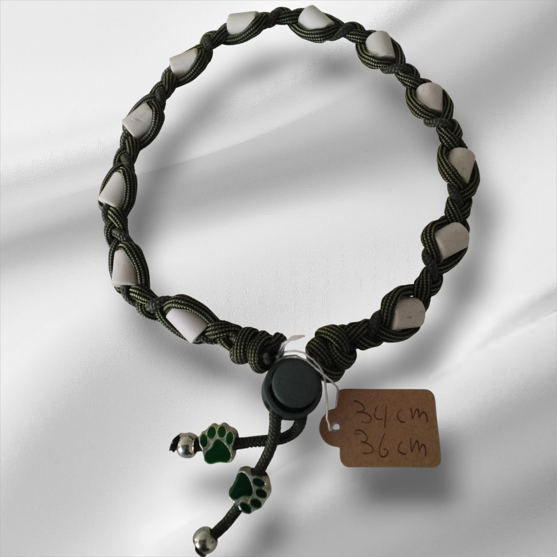 Vlooien / Tekenband + Keramische kralen 34-36 cm Handgemaakt Legergroen