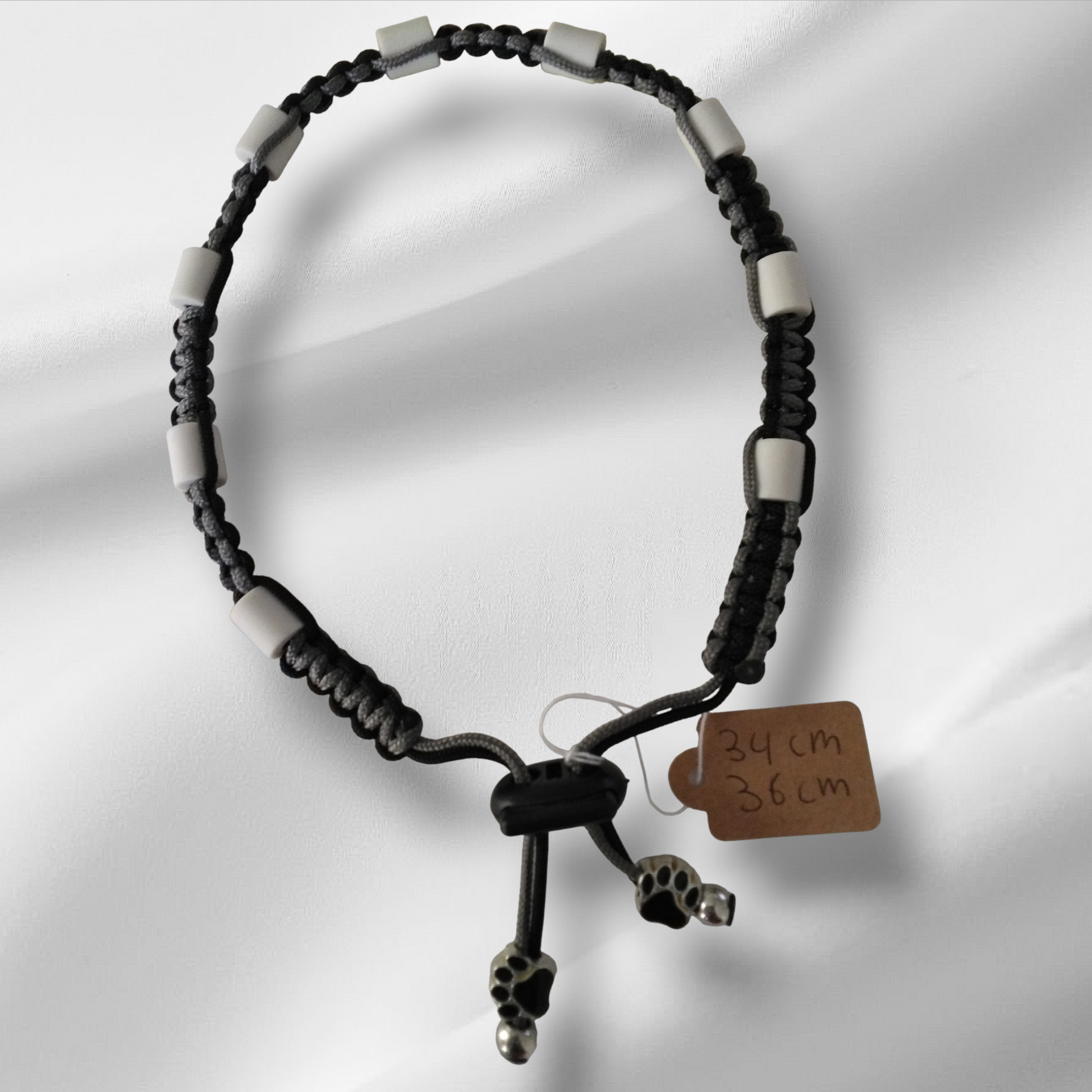 Vlooien / Tekenband + Keramische kralen 34-36 cm Handgemaakt Grijs Zwart